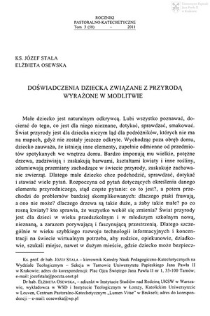 Doświadczenia dziecka związane z przyrodą wyrażone w modlitwieDoświadczenia dziecka związane z przyrodą wyrażone w modlitwie