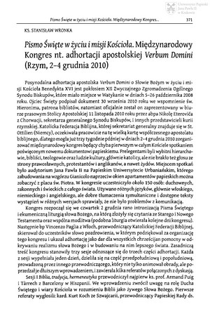 Pismo Święte w życiu i misji Kościoła. Międzynarodowy Kongres nt. adhortacji apostolskiej "Verbum Domini" (Rzym, 2-4 grudnia, 2010)Pismo Święte w życiu i misji Kościoła. Międzynarodowy Kongres nt. adhortacji apostolskiej "Verbum Domini" (Rzym, 2-4 grudnia, 2010)