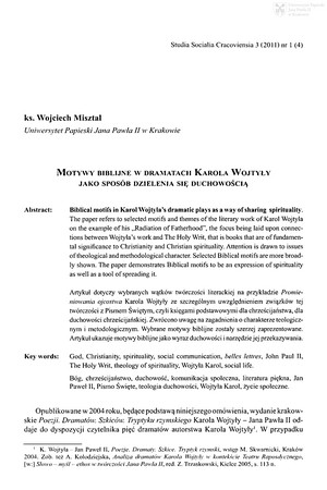 Motywy biblijne w dramatach Karola Wojtyły jako sposób dzielenia się duchowościąMotywy biblijne w dramatach Karola Wojtyły jako sposób dzielenia się duchowością