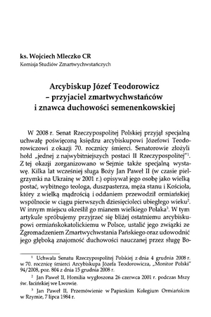Arcybiskup Józef Teodorowicz – przyjaciel zmartwychwstańców i znawca duchowości semenenkowskiejArcybiskup Józef Teodorowicz – przyjaciel zmartwychwstańców i znawca duchowości semenenkowskiej