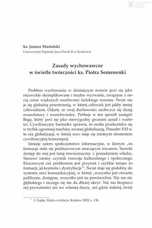 Zasady wychowawcze w świetle twórczości ks. Piotra SemenenkiZasady wychowawcze w świetle twórczości ks. Piotra Semenenki