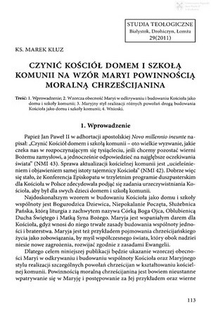 Czynić Kościół domem i szkołą komunii na wzór Maryi powinnością moralną chrześcijaninaCzynić Kościół domem i szkołą komunii na wzór Maryi powinnością moralną chrześcijanina