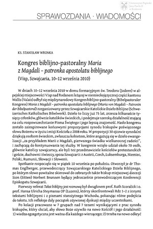 Kongres biblijno-pastoralny "Maria z Magdalii - patronka apostolatu biblijnego" : (Visp, Szwajcaria, 10-12 września 2010)Kongres biblijno-pastoralny "Maria z Magdalii - patronka apostolatu biblijnego" : (Visp, Szwajcaria, 10-12 września 2010)