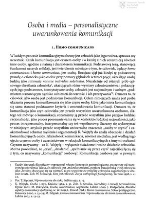 Osoba i media - personalistyczne uwarunkowania komunikacjiOsoba i media - personalistyczne uwarunkowania komunikacji