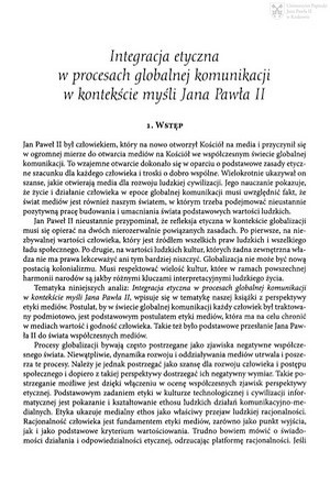 Integracja etyczna w procesach globalnej komunikacji w kontekście myśli Jana Pawła IIIntegracja etyczna w procesach globalnej komunikacji w kontekście myśli Jana Pawła II