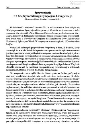 - Mieczkowski, Janusz (1969- ), IX Międzynarodowe Sympozjum Liturgiczne Ars Liturgica : l'arte e servizio della liturgia (Monastero di Bose, 2-4 czerwca 2011)