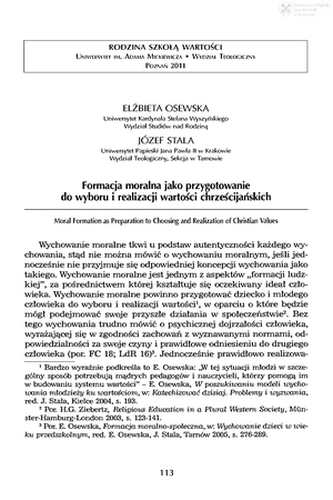 Formacja moralna jako przygotowanie do wyboru i realizacji wartości chrześcijańskichFormacja moralna jako przygotowanie do wyboru i realizacji wartości chrześcijańskich
