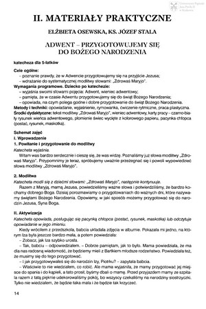 Słowa kluczowe: Katecheza , Scenariusze zajęć , Przedszkole , Adwent