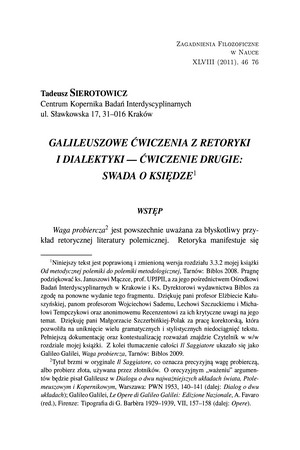Galileuszowe ćwiczenia z retoryki i dialektyki - ćwiczenie drugie : swada o księdzeGalileuszowe ćwiczenia z retoryki i dialektyki - ćwiczenie drugie : swada o księdze