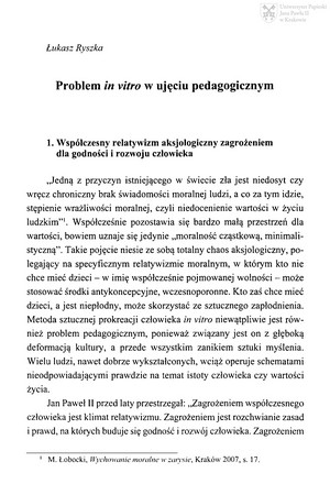 Słowa kluczowe: In vitro , Etyka małżensko-rodzinna , Człowiek , Relatywizm