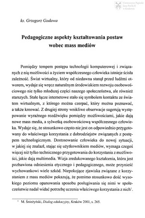 Pedagogiczne aspekty kształtowania postaw wobec mass mediów