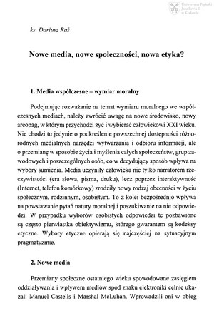 Nowe media, nowe społeczności, nowa etyka?