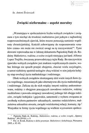 Słowa kluczowe: Etyka małżensko-rodzinna , Etyka seksualna , Małżeństwo , Rodzina , Związki nieformalne , Homoseksualizm , Wolne związki , Rodziny zrekonstruowane , Samotność , Bezdzietność , Zło