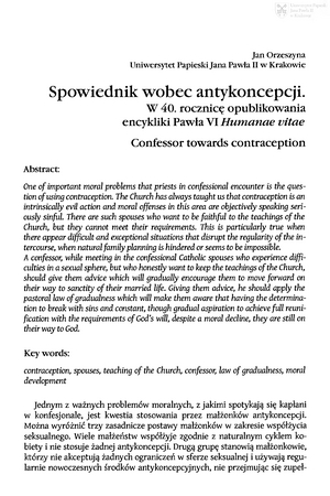 Spowiednik wobec antykoncepcji. W 40. rocznicę opublikowania encykliki Pawła VI Humanae VitaeSpowiednik wobec antykoncepcji. W 40. rocznicę opublikowania encykliki Pawła VI Humanae Vitae
