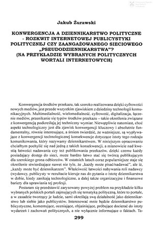 Konwergencja a dziennikarstwo polityczne - rozkwit internetowej publicystyki politycznej czy zaangażowanego sieciowego "pseudodziennikarstwa"? : (na przykładzie wybranych politycznych wortali internetowych)Konwergencja a dziennikarstwo polityczne - rozkwit internetowej publicystyki politycznej czy zaangażowanego sieciowego "pseudodziennikarstwa"? : (na przykładzie wybranych politycznych wortali internetowych)
