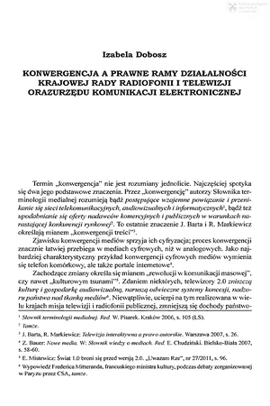 Konwergencja a prawne ramy działalności Krajowej Rady Radiofonii i Telewizji oraz Urzędu Komunikacji ElektronicznejKonwergencja a prawne ramy działalności Krajowej Rady Radiofonii i Telewizji oraz Urzędu Komunikacji Elektronicznej