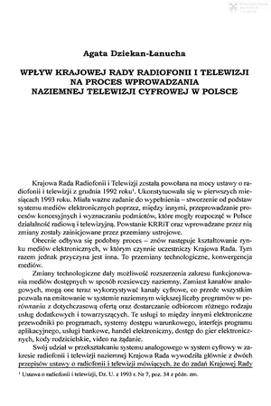 Wpływ Krajowej Rady Radiofonii i Telewizji na proces wprowadzania naziemniej telewizji cyfrowej w PolsceWpływ Krajowej Rady Radiofonii i Telewizji na proces wprowadzania naziemniej telewizji cyfrowej w Polsce
