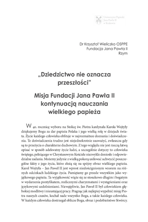 "Dziedzictwo nie oznacza przeszłości" : Misja Fundacji Jana Pawła II kontynuacją nauczania wielkiego papieża"Dziedzictwo nie oznacza przeszłości" : Misja Fundacji Jana Pawła II kontynuacją nauczania wielkiego papieża
