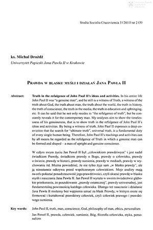 Słowa kluczowe: Jan Paweł II (papież ; 1920-2005) - myśl , Prawda , Sumienie , Etyka