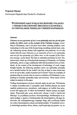 Wypowiedź jako wyraz duchowości własnej i troski o duchowość drugiego człowieka : na przykładzie przekazu chrześcijanskiegoWypowiedź jako wyraz duchowości własnej i troski o duchowość drugiego człowieka : na przykładzie przekazu chrześcijanskiego