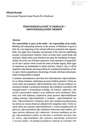 Słowa kluczowe: Odpowiedzialność , Media , Etyka mediów , Komunikacja społeczna , Człowiek , Społeczność