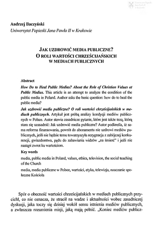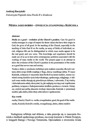 Słowa kluczowe: Mass media , Wartości chrześcijańskie , Dobro , Etyka mediów