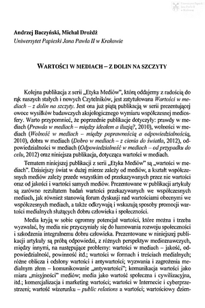 Wartości w mediach : z dolin na szczyty. WstępWartości w mediach : z dolin na szczyty. Wstęp