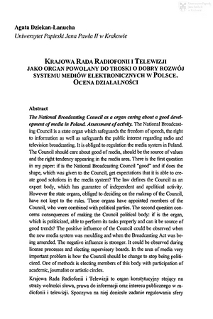 Słowa kluczowe: Krajowa Rada Radiofonii i Telewizji , Mass media , Ustawa medialna