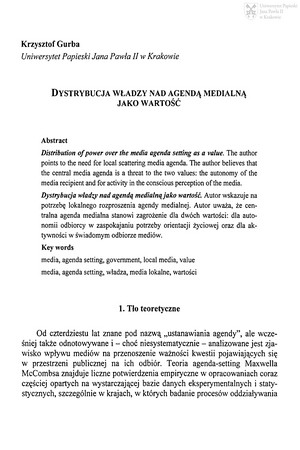 Dystrybucja władzy nad agendą medialną jako wartośćDystrybucja władzy nad agendą medialną jako wartość