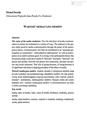 Słowa kluczowe: Media , Władza , Wartości