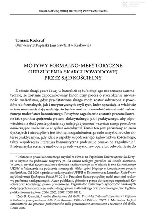 Motywy formalno-merytoryczne odrzucenia skargi powodowej przez sąd kościelnyMotywy formalno-merytoryczne odrzucenia skargi powodowej przez sąd kościelny