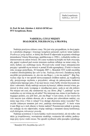 Nadzieja, czyli między dialogiem, tolerancją a prawdąNadzieja, czyli między dialogiem, tolerancją a prawdą