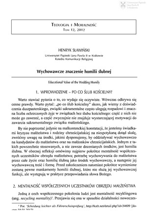 Wychowawcze znaczenie homilii ślubnejWychowawcze znaczenie homilii ślubnej