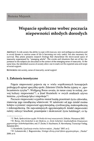 Wsparcie społeczne wobec poczucia niepewności młodych dorosłychWsparcie społeczne wobec poczucia niepewności młodych dorosłych