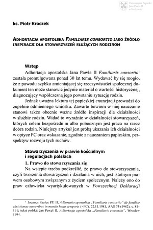 Adhortacja apostolska "Familiaris consortio" jako źródło inspiracji dla stowarzyszeń służących rodzinomAdhortacja apostolska "Familiaris consortio" jako źródło inspiracji dla stowarzyszeń służących rodzinom