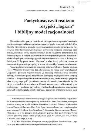 Poetyckość czyli realizm : rosyjski "logizm" i biblijny model racjonalnościPoetyckość czyli realizm : rosyjski "logizm" i biblijny model racjonalności