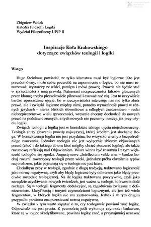 Inspiracje Koła Krakowskiego dotyczące związków teologii i logikiInspiracje Koła Krakowskiego dotyczące związków teologii i logiki