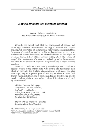 Słowa kluczowe: Myślenie religijne , Myślenie magiczne