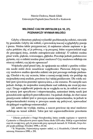 Miłować całym umysłem (Łk 10, 27) : poznawczy wymiar miłościMiłować całym umysłem (Łk 10, 27) : poznawczy wymiar miłości
