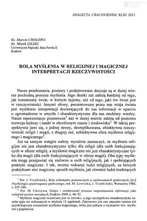 Rola myślenia w religijnej i magicznej interpretacji rzeczywistościRola myślenia w religijnej i magicznej interpretacji rzeczywistości