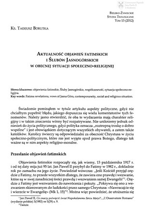 Aktualność Objawień Fatimskich i Ślubów Jasnogórskich w obecnej sytuacji społeczno-religijnejAktualność Objawień Fatimskich i Ślubów Jasnogórskich w obecnej sytuacji społeczno-religijnej