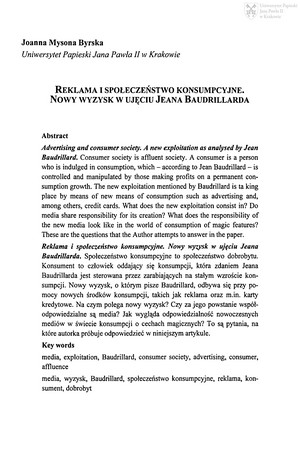 Słowa kluczowe: Baudrillard, Jean (1929-2007) - krytyka i interpretacja , Reklama , Społeczeństwo , Wyzysk , Media , Dobrobyt