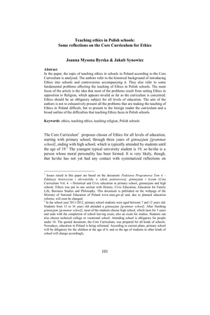 Teaching ethics in Polish schools : some reflections on the Core Curriculum for EthicsTeaching ethics in Polish schools : some reflections on the Core Curriculum for Ethics