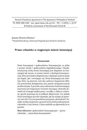 Słowa kluczowe: Społeczeństwo konsumpcyjne , Prawa człowieka , Konsumenci , Konsumpcjonizm
