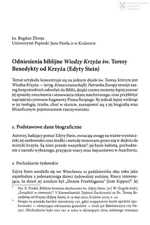 Słowa kluczowe: Teresa Benedykta od Krzyża (św. ; 1891-1942) - krytyka i interpretacja , Biografie i księgi pamiątkowe , Biblia - analiza i interpretacja