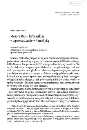 Masora Biblii Hebrajskiej : wprowadzenie w tematykęMasora Biblii Hebrajskiej : wprowadzenie w tematykę