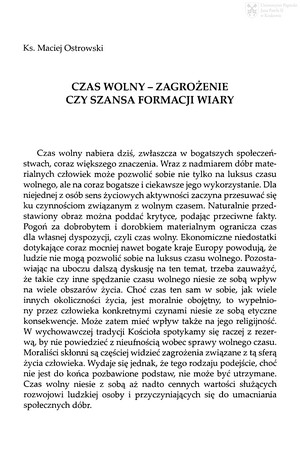 Czas wolny - zagrożenie czy szansa formacji wiary