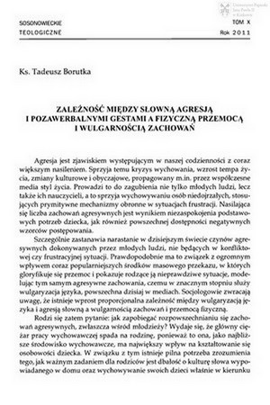 Zależność między słowną agresją i pozawerbalnymi gestami a fizyczną przemocą i wulgarnością zachowańZależność między słowną agresją i pozawerbalnymi gestami a fizyczną przemocą i wulgarnością zachowań