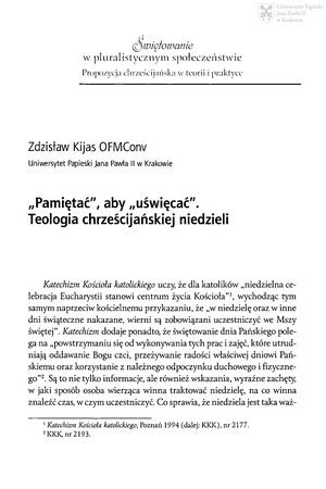 "Pamiętać" aby "uświęcać". Teologia chrześcijańskiej niedzieli"Pamiętać" aby "uświęcać". Teologia chrześcijańskiej niedzieli