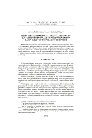 Próba oceny zróżnicowania spożycia artykułów żywnościowych w Polsce na podstawie wyników badań budżetów gospodarstw domowychPróba oceny zróżnicowania spożycia artykułów żywnościowych w Polsce na podstawie wyników badań budżetów gospodarstw domowych